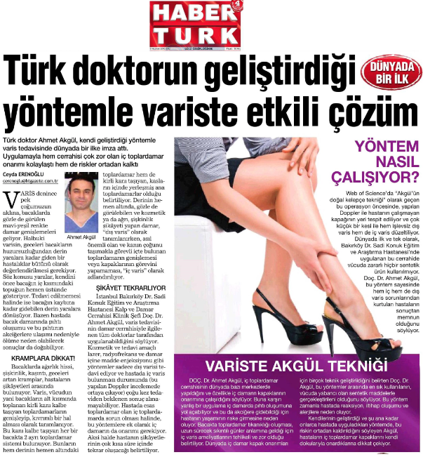 Tekrar varis olmaması için yeni bir yöntem geliştirdiklerini anlatan Prof. Dr. Ahmet Akgül, “Mikro Avulsiyon yöntemi; Her zaman belirttiğim gibi önce hastanın bacağındaki damar sistemi incelenmeli, iç damarlar dış damarlar, kasların içindeki toplardamarlar, cildin altındaki toplardamarlar incelenmeli. Yani yalnızca görünen kılcal damarlara göre karar verilmemeli. Bu kılcal damarlar niye ortaya çıkmış, iç taraflarda bir sorun mu var, bakılmalı. Yani altyapısı bozuk olan bir caddeye, asfaltta çatlaklar var diye ne kadar asfalt döküp düzenleme yaparsanız yapın, tekrar oluşur o çatlaklar çünkü altyapı bozuk. Kanalizasyon yani drenaj sistemi bozuk, su sızıyor ve asfaltı bozup çatlaklar oluşturuyor. İşte bacaktaki toplardamar yani varis sistemi de böyle. Kaçak var ise bacakta kan birikiyor, ve ciltte kılcal damarlar oluşuyor. işte önce ehil ellerde ayakta dopler ile bacakta damar haritalaması yapılmalı. kaçak ve bozuk bir nokta varsa kapak onarımı (Akgül yöntemi) ile ameliyat edilmeli, eğer kaçak yok, iç damarlar temiz ama kılcal damarlar var ise hemen, içvaris kapak ameliyatından sonra ise 10. günde hastanın artık ciltteki kılcal damarları tedavi edilmeli. Önce bu damarların vücut tarafından kullanıp kullanılmadığına bakılmalı ve sonra yalnızca kullanılmayan kılcal damar özel bir kesici cihaz ile cilt üzerinden iz yapmadan içine kan veren yerden ayrılıyor böylece içine gereksiz kan gidip o damarı ciltten görünür hale getiremiyor ve cilt kılcal damarı kayboluyor. Bu şekilde yalnızca vücudun işine yaramayan damarlar yok edildiği için vücut yeni damar oluşturmak için sinyal göndermiyor ve varis tekrarlamıyor” diye konuştu.