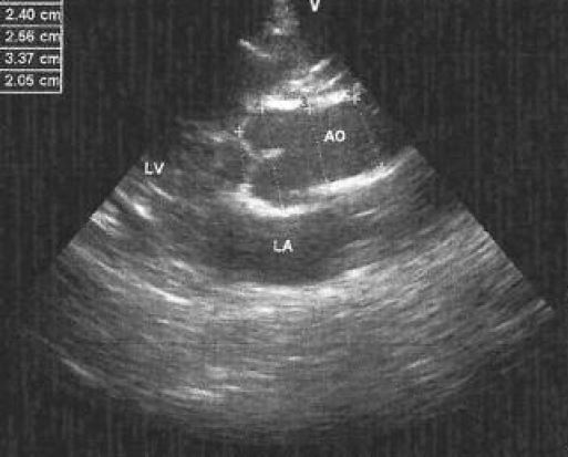 Aşağıdaki resimleri inceleyiniz. İlk resimde hastalığı olmayan bir kişinin ekosu yapılmıştır. AO ile yazan yer hastanın AORT DAMARI dır. 2. resimde ise Marfan hastalığı olan bir kişinin kalp ekokardiyografisi. Dikkat edilirse AO yazan aort damarı genişlemiş ve kapak düzenliliği bozulmuştur. İşte bu yüzden Marfan hastalığında 6 ayda bir eko tetkiki ile takibi gereklidir.